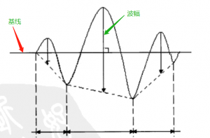 波峰到波谷之间的垂直距离就是波幅,但是脑电的数据会出现基线动荡的情况,因此,在测量脑电的波幅时,是将相邻两个波谷进行直接连线,则这两个波谷之间的波峰与波谷连接线中点的垂直距离即为此波的波幅。