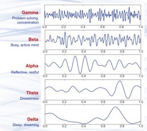 脑电波根据频率不同被分为不同类型的波,如δ波、θ波、α波、β波、γ波。通过不同的波可以大致确认被试脑区的兴奋程度,间接推测出被试者所处的不同状态。