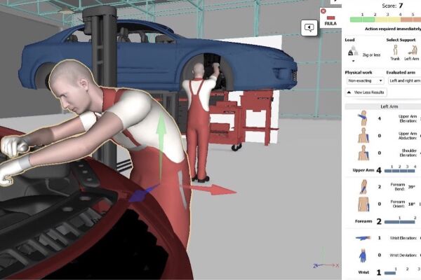 ErgoWorks软件可以实时读取第三方运动捕捉软件的数据,计算相关的关节角度,自动进行实时评分,大大降低了人眼观察的造成的误差,也降低了工作量。