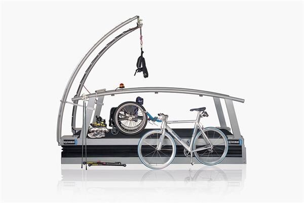 h/p/cosmos Saturn系列是大型的专业多功能跑台,根据用户使用领域可配备不同跑带面积和跑带类型,最大跑带面积可配置450x300cm,可用于自行车、轮滑、滑雪模拟(需选配特殊履带)及轮椅训练。跑台可直接、间接测量最大心率,和气体分析配合使用可测量最大摄氧量,评价有氧运动能力,为运动员训练提供参考。