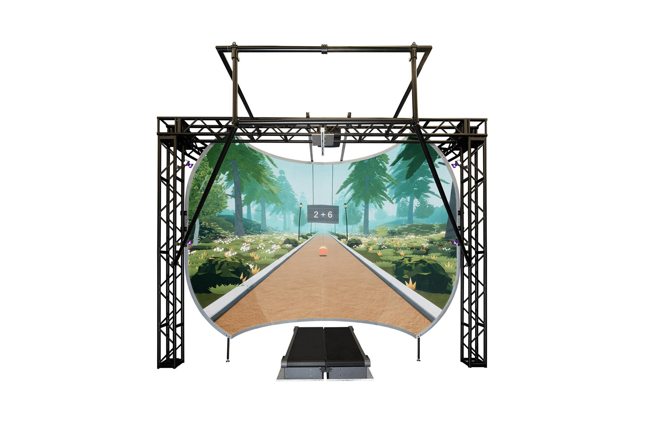 由Bertec双带三维测力跑台、运动捕捉系统、4米或5米的虚拟现实环幕组合而成,结合视觉刺激与力学刺激,给予受试者良好的沉浸感,从而获得更精确的生物力学数据。