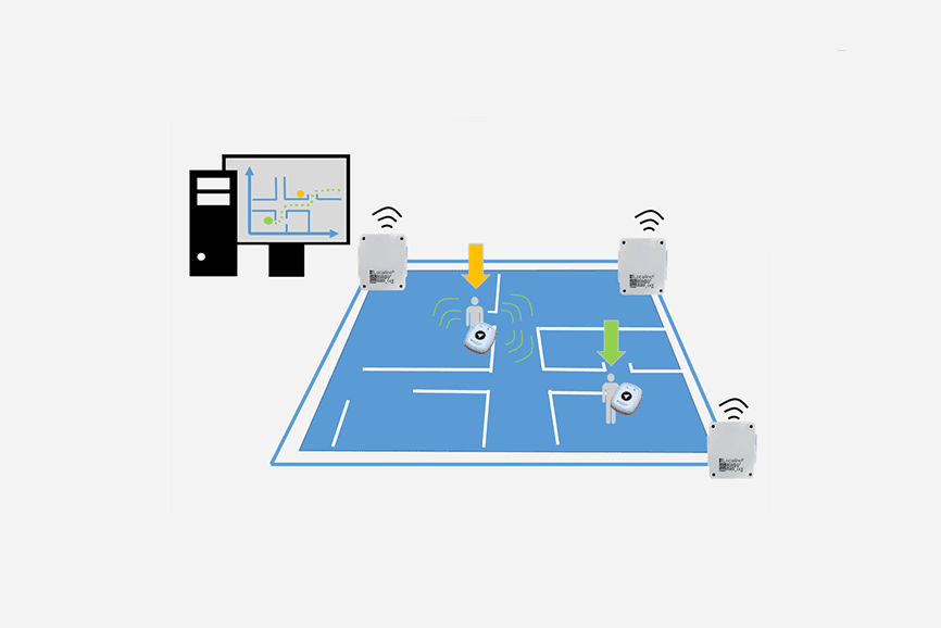 大多数室内定位系统使用蓝牙、WLAN 或 RFID 信号来定位人或物体。由于这些系统根据接收信号强度估计距离,因此精度仅在几米内,无法执行准确的位置确定。然而,凭借我们的技术,我们能够使用基于时间延迟的测量方法将人或移动物体定位到几厘米以内。这样,可以达到大约 10 厘米的精度。使用三个锚点可以进行二维定位。当使用四个锚点时,就可以进行三维定位。