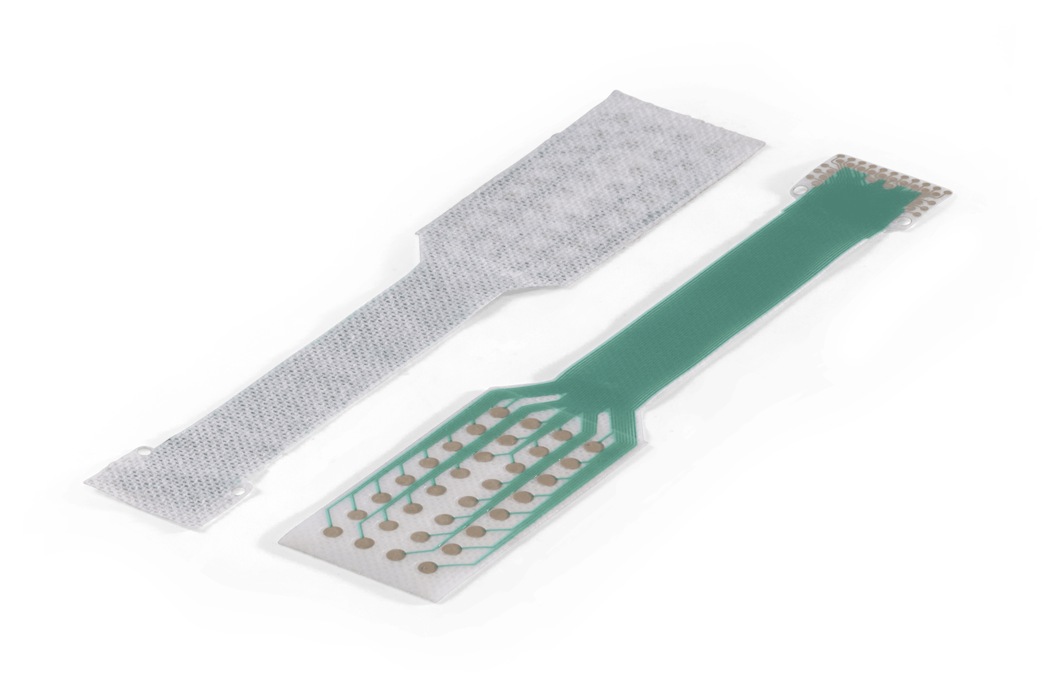 沿着网格中间的切割线制作两个32通道、功能齐全的柔性HD-EMG网格。这允许进一步定制网格,以满足您的研究需求。