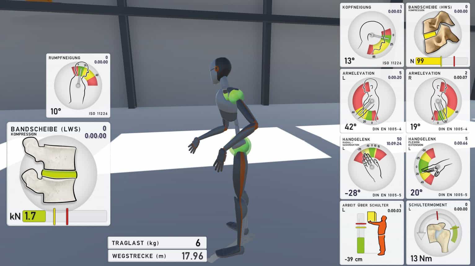 直观 3D 可视化:提供直观的 3D 可视化界面,显示动画负载参数和同步视频,方便用户清晰了解工作中的身体受力情况。
