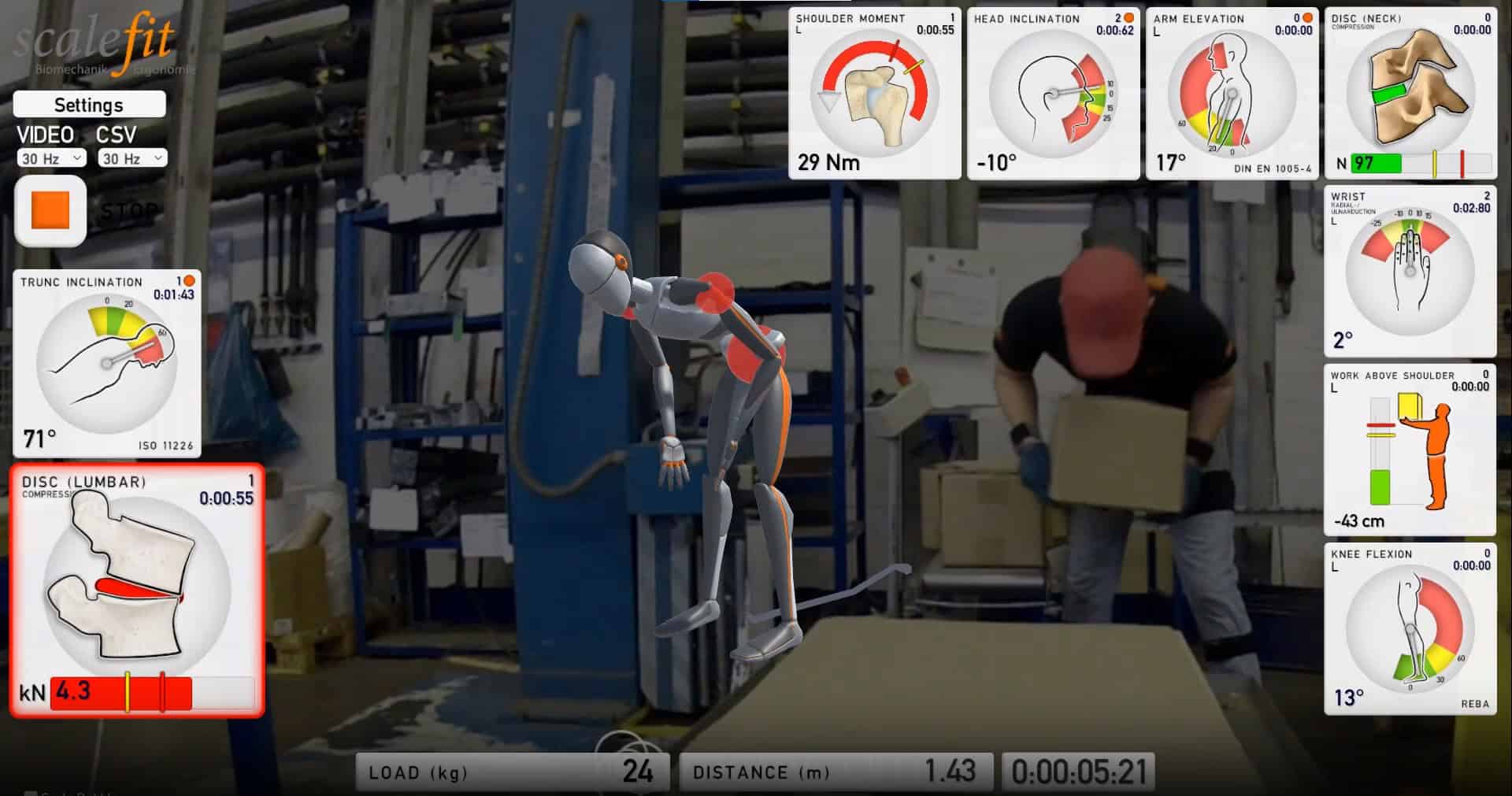 在制造业和物流等环境中,背部、肩部、椎间盘和关节问题给员工带来巨大挑战。传统预防措施多依赖模拟清单等工具,而 Scalefit 将人体工程学分析提升到新高度,聚焦于体力工作环境中导致肌肉骨骼疾病(MSDS)的三大关键因素:力量、姿势和重复动作。