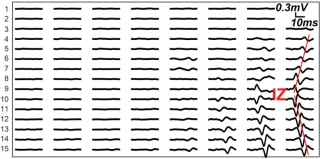 图4:使用HD-EMG信号的振幅和极性定位神经支配区(IZ)。